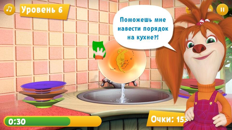 - Моем посуду: помогите Лизе навести порядок на кухне.