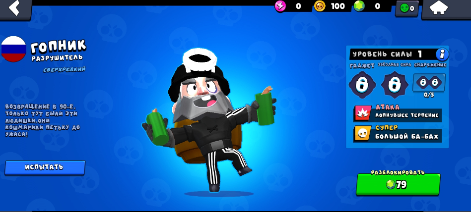 Русский Бравл (Russia Brawl) — это динамичная экшен-игра, где вас ждут захватывающие 3v3 сражения в стиле русских мемов. В центре внимания — уникальные персонажи, каждый из которых обладает своими способностями и стилем боя. Ваша цель — одерживать победы в PvP-битвах, прокачивать героев и становиться лучшим бойцом на арене.