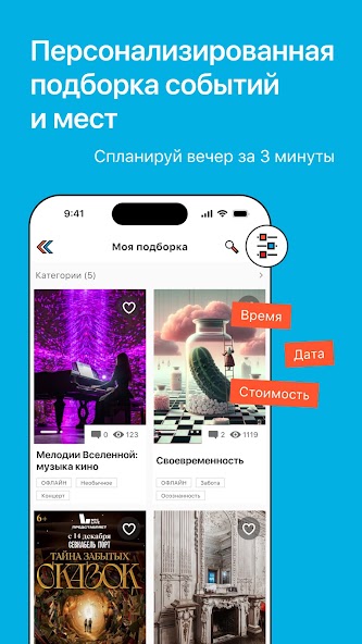 - Фильтры по интересам: выбирайте мероприятия, которые подходят именно вам.