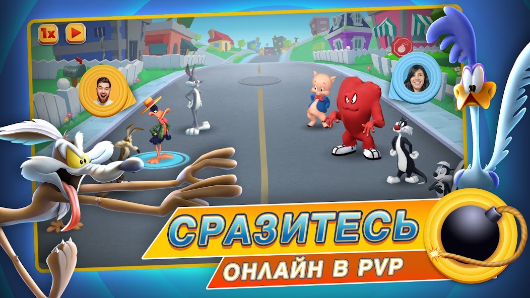 В основе геймплея лежат пошаговые бои, где вы используете уникальные способности персонажей. Например, сбросьте наковальню на голову врага или запустите сейф корпорации ACME. В PvP-режиме вы можете сражаться с другими командами, красть ящики с усилениями и защищать свои ресурсы. Стратегия и правильный подбор героев играют ключевую роль в победе.