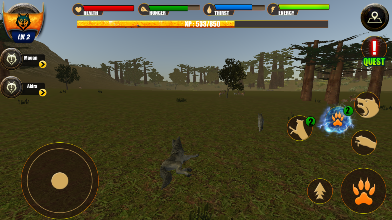 Wolf Life Simulation 2017 сочетает элементы RPG и симулятора. Вы можете выбирать из разных видов волков, каждый из которых обладает уникальными способностями. Прокачивайте навыки, улучшайте атаку и защиту, чтобы стать сильнейшим в лесу.