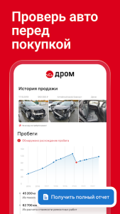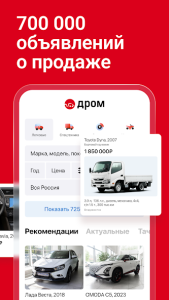 Дром Авто — это приложение для Android, которое помогает вам находить, покупать и продавать автомобили. С его помощью вы можете исследовать огромную базу объявлений, включающую более 700 000 предложений со всей России. Удобные фильтры позволяют быстро находить подходящие варианты, задавая параметры, такие как модель, год выпуска или объем двигателя.
