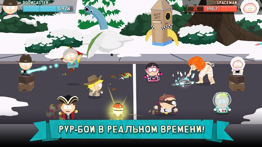 South Park: Phone Destroyer — это карточная стратегия с элементами юмора, которая переносит вас в безумный мир культового мультсериала. Здесь вы становитесь Новичком, который помогает Картману и его друзьям в эпической битве ковбоев против индейцев. Каждая карта — это уникальный персонаж с особыми способностями, а ваша задача — грамотно использовать их, чтобы одержать победу. Игра сочетает в себе элементы тактики и хаоса, что делает каждую битву непредсказуемой.