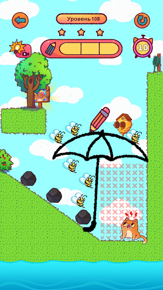 Спаси Симбочку - это казуальная игра-головоломка для Android, созданная для любителей интеллектуальных развлечений. Сюжет завязывается вокруг помощи очаровательному котику Симбе, которого нужно защитить от различных угроз вроде пчёл. Ваши действия сводятся к рисованию защитных линий, чтобы предотвратить опасности. Простота управления в сочетании с увлекательным процессом делает игру отличным выбором для расслабляющих игровых сессий.