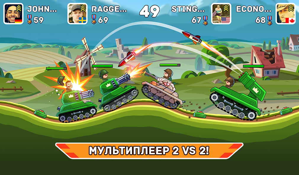 - Разблокируйте новые танки, такие как "Титан", "Феникс" или "Кракен".