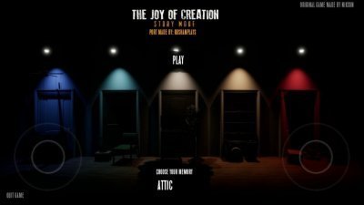 The Joy of Creation: Story Mode предлагает пять уникальных локаций, каждая из которых имеет свои механики и врагов. От спальни до чердака — каждая зона требует своей стратегии. Кроме того, игра включает режимы испытаний, где вы можете проверить свои навыки в экстремальных условиях.