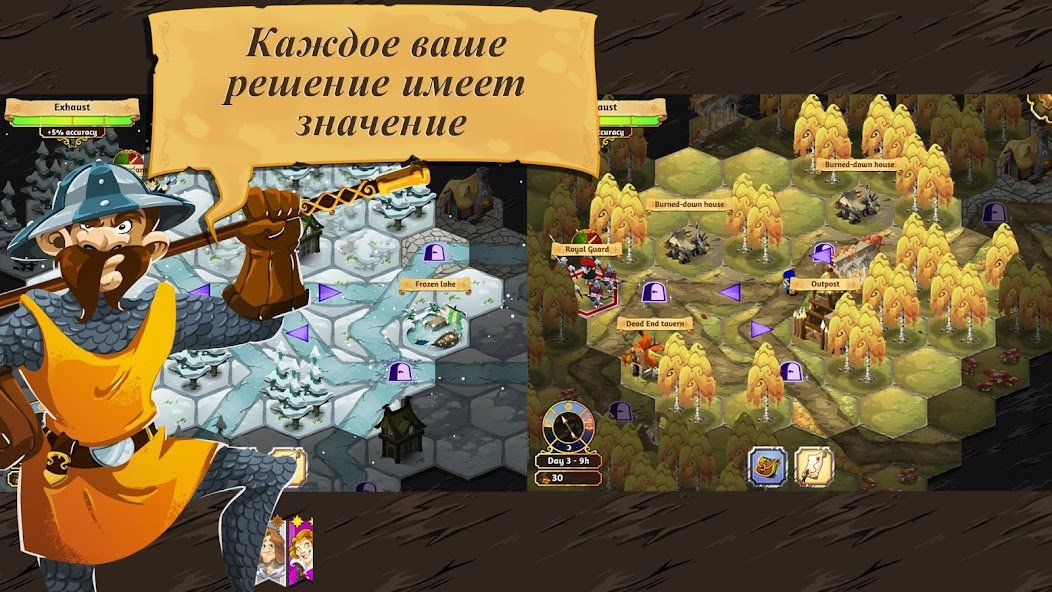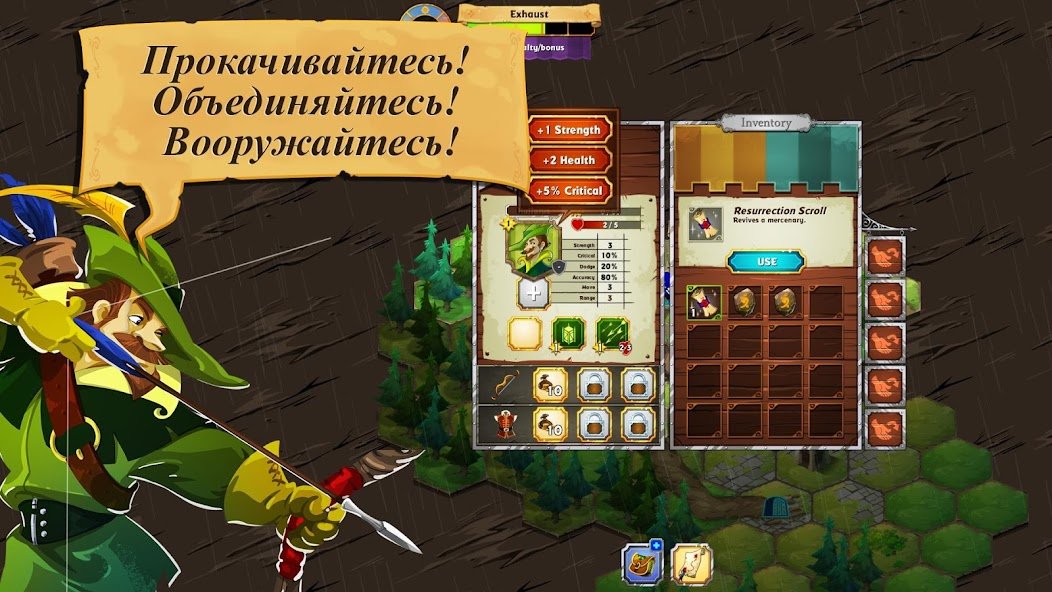 - Нанимайте наёмников с уникальными навыками, такими как магия, стрельба из лука или разведка.