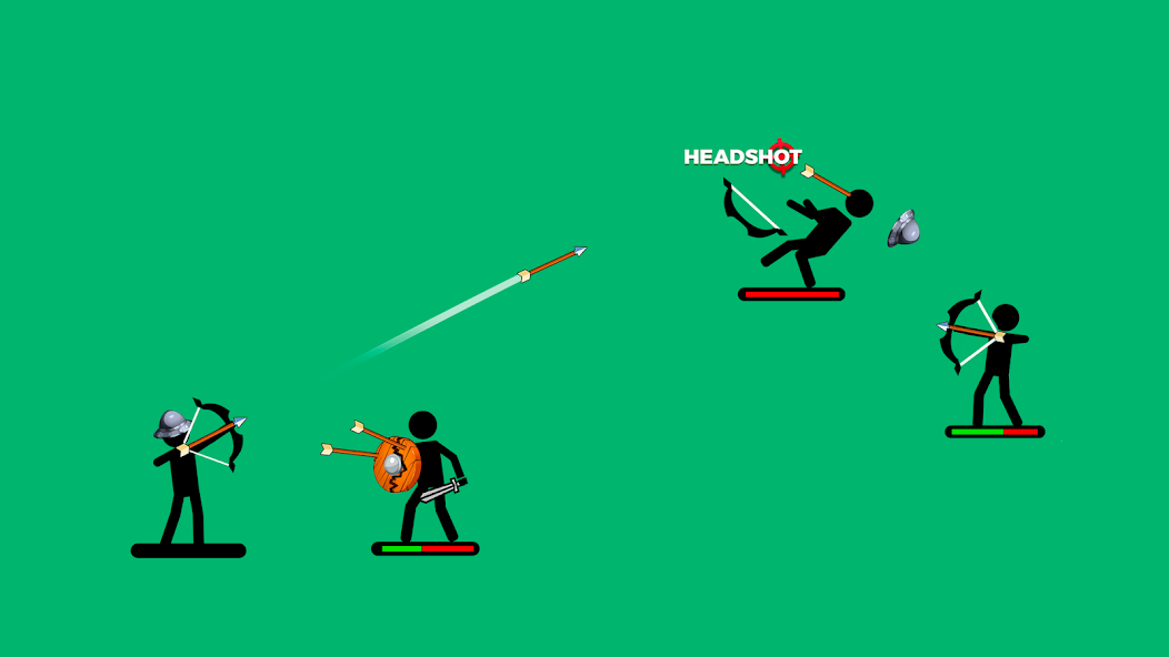 Вы управляете стикменом, вооружённым луком, копьями и сюрикенами. Чтобы победить, нужно точно рассчитывать угол и силу выстрела. За успешные попадания вы зарабатываете монеты, которые можно потратить на улучшение оружия, брони и заклинаний. С каждым уровнем враги становятся сильнее, а битвы — сложнее.