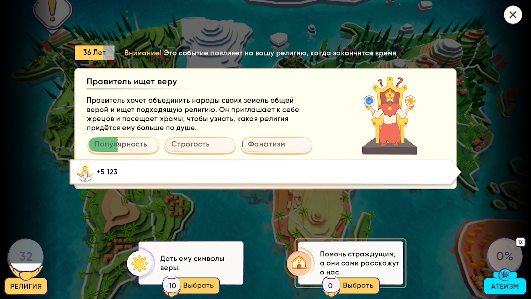 Симулятор Бога. Religion Inc. — это стратегическая игра, где вы становитесь создателем новой религии. Ваша задача — выбрать страну для начала, разработать уникальные аспекты веры и распространить её по всему миру. Вы будете решать, как адаптировать религию к вызовам времени и как справляться с сопротивлением неверующих.